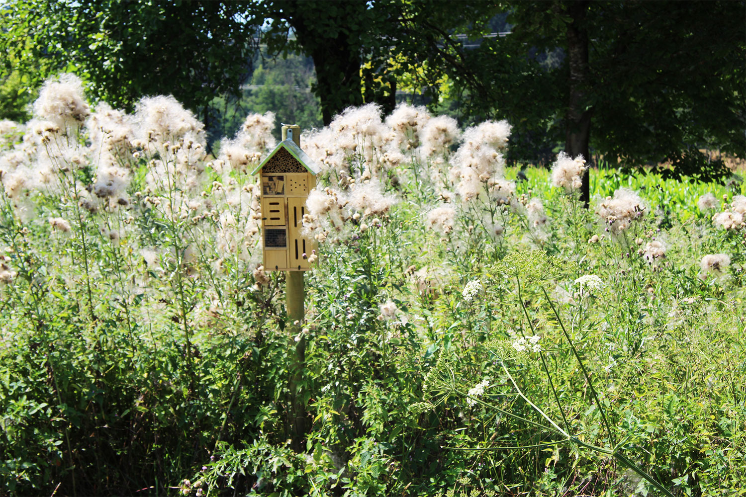 Wir sind sehr stolz auf dieses Juwel der Natur und hoffen, dass Sie dieses Erlebnis genießen, aber auch respektieren und schützen. Insbesondere die Bienen arbeiten hart, um von den seltenen Blumen im Biotop unseren Honig zu produzieren. Die Ruhe auf unserem Platz erfreuen auch die verschiedenen Wildbienen, Schmetterlinge, Marienkäfer etc., die sich in unseren Insektenhotels einnisten.